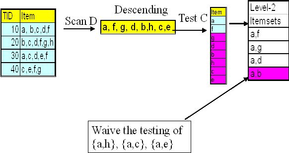 Table 6. Constraint checking on level-1, 2 and 3 itemsets